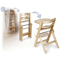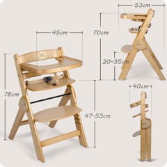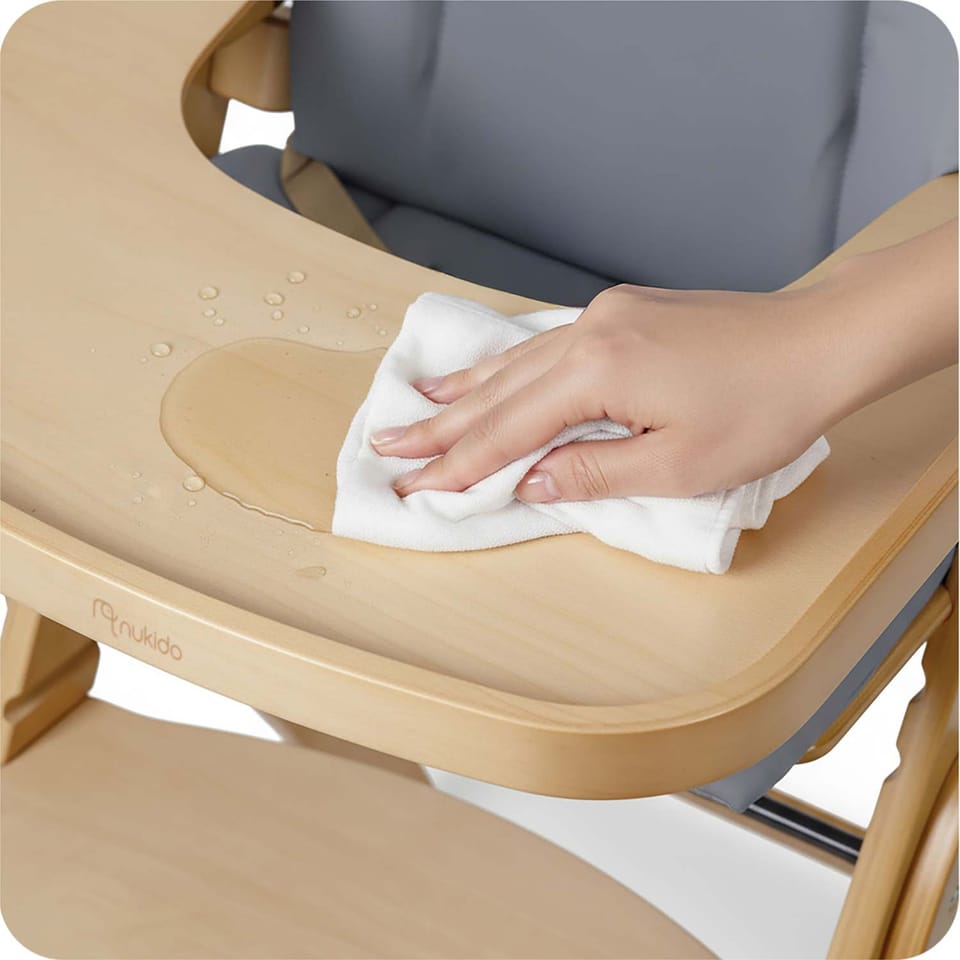 Zdejmowana tacka znacząco ułatwia utrzymanie czystości. Lakierowane drewno topolowe to gwarancja jakości. Zabezpieczone drewno nie pozwoli pochłonąć plam i krzesełko szybko wróci do perfekcyjnej czystości.