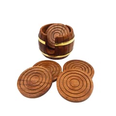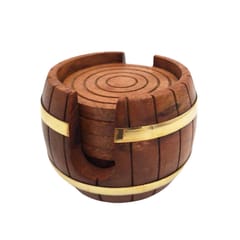 Drewniane Podstawki pod kubki - Zestaw Beczka - DNU-019 Doskonały pomysł na prezent dla miłośnika kawy lub herbaty. Zestaw obejmuje: 6 x podstawka pod kubek i Pojemnik w kształcie beczki. Materiał: drewno, zdobienia mosiężne. Wymiary pojemnika: 10 x 6,5 cm