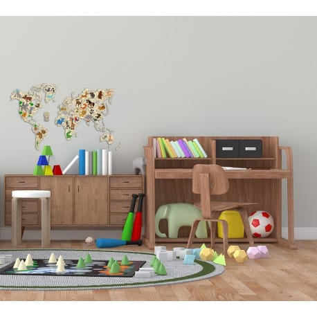 Drewniane puzzle 3D Wooden.City - Zwierzątka Mapa Świata L Drewniane mapy Wooden.City to nowoczesna forma Puzzli 3D do samodzielnego montażu bez użycia dodatkowych narzędzi oraz kleju. Mapa Świata ze zwierzątkami to wspaniały prezent dla każdego miłośnika układanek, a złożony model może posłużyć jako dekoracja ścienna. Charakterystyka materiał - ekologiczna sklejka brzozowa wyprodukowana w Polsce elementy wykonane z dbałością o szczegóły złożenie nie wymaga użycia dodatkowych narzędzi idealna jako dekoracja ściany do pokoju dziecięcego świetnie sprawdzi się jako prezent na mapie widoczne są zwierzątka, które można pokolorować, tworząc niepowtarzalną dekorację ścienną czas składania to ok. 40 minut W zestawie opakowanie (drewniana skrzyneczka) 29 elementów różnej wielkości taśma do montażu na ścianę Wymiary złożonego modelu długość: 83cm szerokość: 55cm waga: ok. 1kg Wymiary opakowania długość: 35,5cm szerokość: 24cm wysokość: 4cm Model przeznaczony dla dzieci powyżej 14 roku życia. WM.522