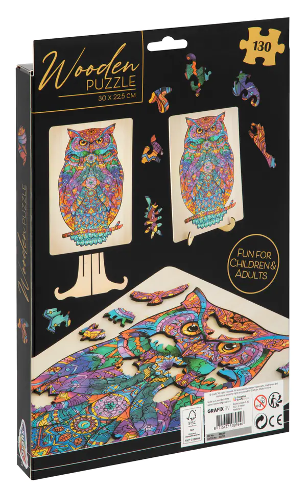 Drewnianie puzzle- sowa, 130 elementów
