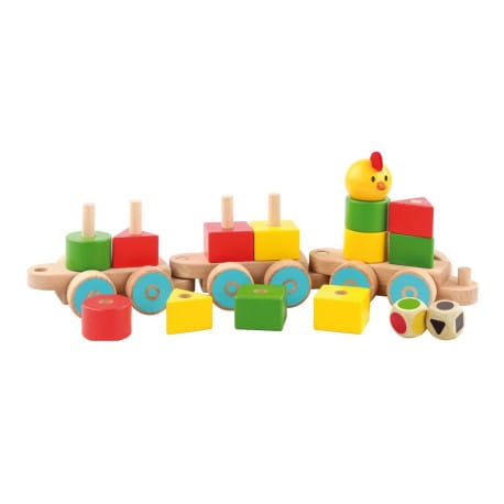 Drewniany pociąg z kurczaczkiem - kształty i kolory