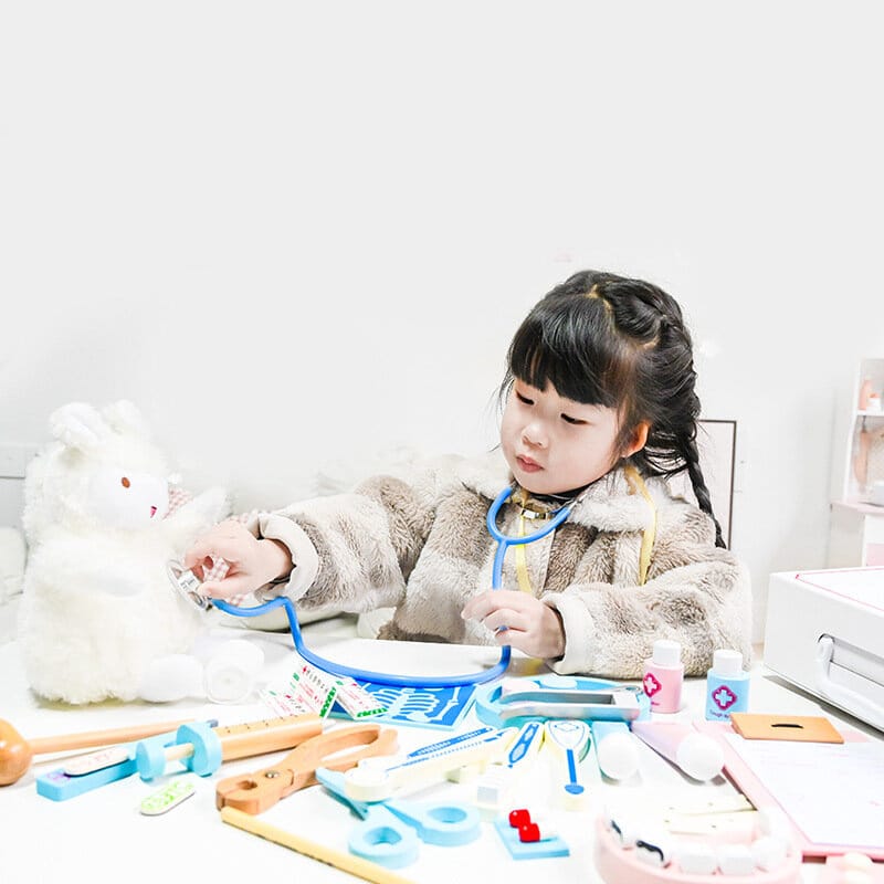 Drewniany Zestaw Lekarski - 43 Elementy - Apteczka, Dentysta, Mały Lekarz