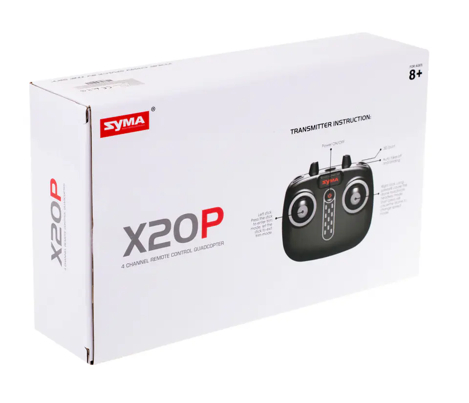 Dron Syma X20P to model typu RTR, gotowy do lotu natychmiast po wyjęciu z pudełka.