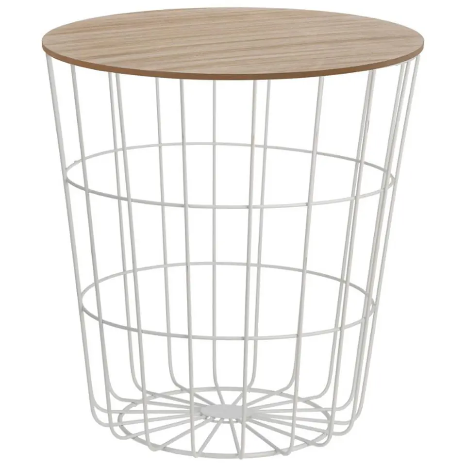 Stolik wykonany z metalowych drutów w kolorze białym. Blat stołu wykonany z płyty mdf w kolorze naturalnym. Stolik świetnie spełnia funkcę mebla podręcznego, stolika kawowego lub nocnego. Idealnie podkreśli skandynawski charakter wnętrza, a także wnętrza w stylu vintage i modern. Podnoszony blat sprawia, że środek stolika można wykorzystać jako np. gazetnik albo pojemnik na przechowywanie podręcznych akcesoriów.