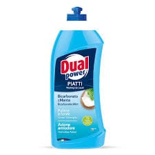 Dual Power Piatti Bicarbonato e Menta płyn do mycia naczyń, który łączy skuteczność sody oczyszczonej z świeżością mięty. Dzięki podwójnej sile działania, skutecznie usuwa tłuszcz i trudne zabrudzenia, jednocześnie eliminując nieprzyjemne zapachy z naczyń i zlewu.