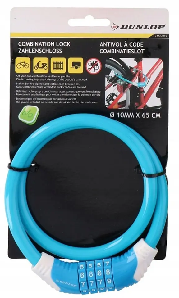 Spiralne zapięcie antykradzieżowe na szyfr marki Dunlop®.