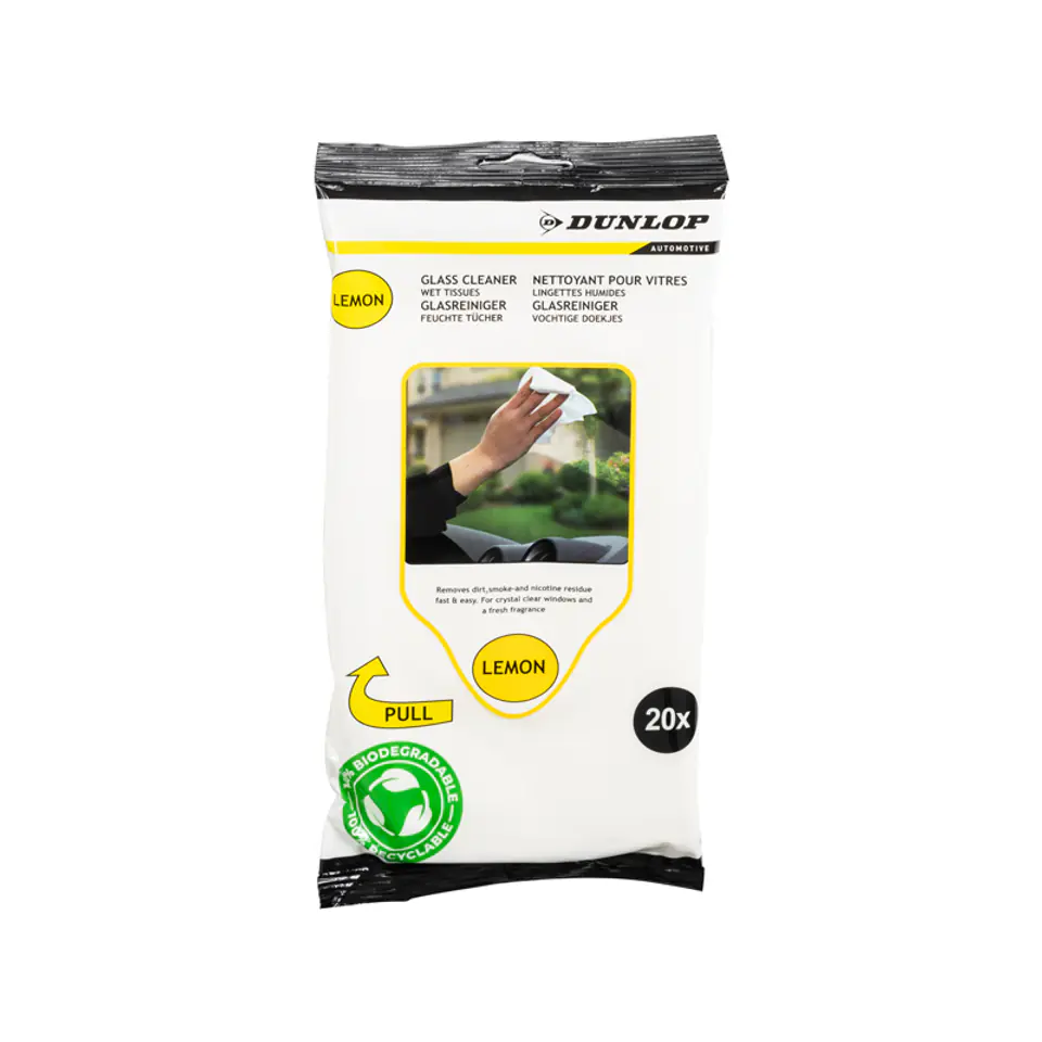 Dunlop - Chusteczki nawilżane do czyszczenia szyb 20 szt. lemon
