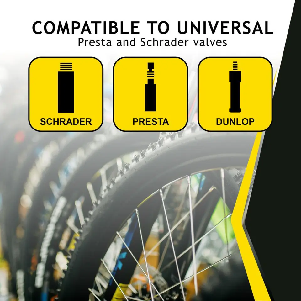 Najważniejsze cechy pompki Dunlop:· Maksymalne ciśnienie: do 160 PSI / 11 Bar – idealne do rowerów, motocykli i samochodów.· Wbudowany manometr – kontroluj ciśnienie z pełną precyzją.· Uniwersalna głowica – kompatybilna z zaworami Schrader, Presta i Dunlop.· Zacisk dźwigniowy – stabilne i szczelne połączenie podczas pompowania.· Solidna konstrukcja – trwały uchwyt i antypoślizgowa stopka zapewniają wygodę.