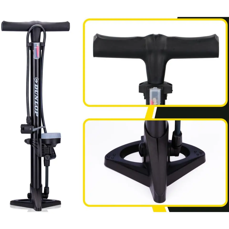 Dlaczego warto wybrać pompkę warsztatową Dunlop:· Precyzja – duży manometr umożliwia dokładny odczyt ciśnienia.· Bezpieczeństwo – system blokady zapobiega utracie powietrza.· Wygoda – szerokie uchwyty i stabilna podstawa dla komfortowego pompowania.· Wszechstronność – idealna do użytku domowego i profesjonalnego.