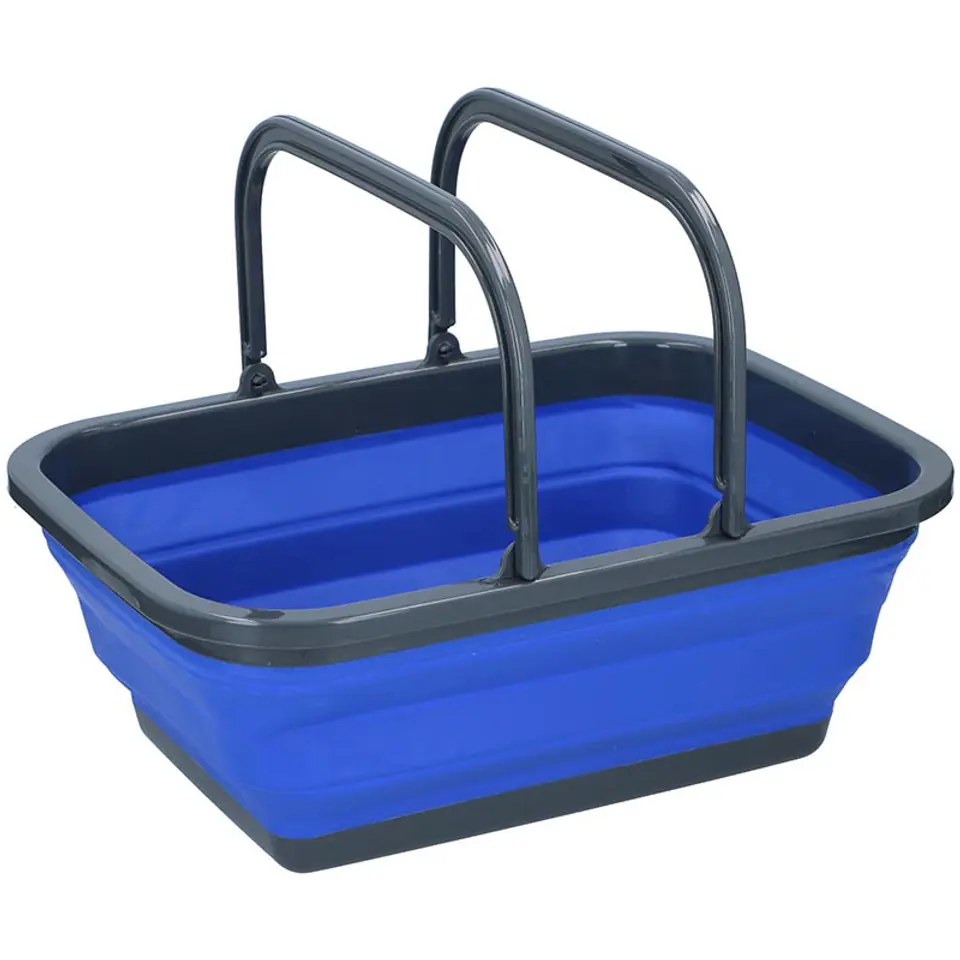 Składany kosz na zakupy w kolorze niebieskim marki Dunlop doskonale sprawdzi się na świeżym powietrzu i na każde wyjścia do sklepu. Jego lekka i kompaktowa konstrukcja pozwala go zabrać wszędzie ze sobą, a wzmocnione uchwyty oraz dno gwarantują wysoką wytrzymałość. Złożona konstrukcja zmieści się w samochodzie oraz plecaku. Specyfikacja:- Materiał: tworzywo sztuczne- Składane uchwyty- Wzmocnione dno- Wytrzymała i lekka konstrukcja- Pojemność: 15l