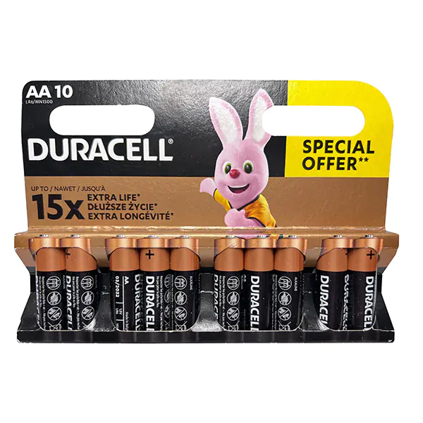 Baterie Duracell AA są kompatybilne z szeroką gamą urządzeń – od pilotów, zabawek i latarek po aparaty fotograficzne, bezprzewodowe myszy, klawiatury i wiele innych produktów codziennego użytku.