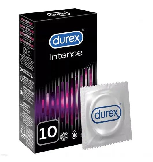 Durex Intense to pierwsze prezerwatywy* które poprawiają doznania seksualne obojga partnerów ułatwiając jej osiągnąć orgazm i dając jemu większą satysfakcję. Przeźroczyste, nawilżane prezerwatywy lateksowe, prążkowane z wypustkami, pokryte żelem stymulującym Desirex. Korzyści dla obojga partnerów! Dla niej: Prążki i wypustki oraz żel stymulujący dają różnorodność doznań od rozgrzewania, przez chłodzenie do mrowienia, co zwiększa intensywność orgazmów. Dla niego: Satysfakcja z dawania przyjemności partnerce, dodatkowo kształt Easy-On zapewnia większy komfort zakładania i lepsze dopasowanie prezerwatywy. Dzięki Durex Intense każdy mężczyzna może zapewnić swoje partnerce niesamowite orgazmy!