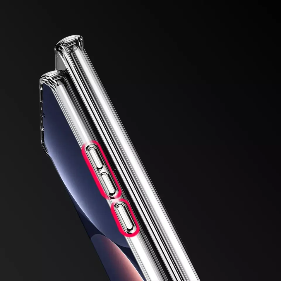 - Utrzymuje krystaliczną przezroczystość przez długi czas. Połączenie TPU i PC sprawia, że etui nie żółknie