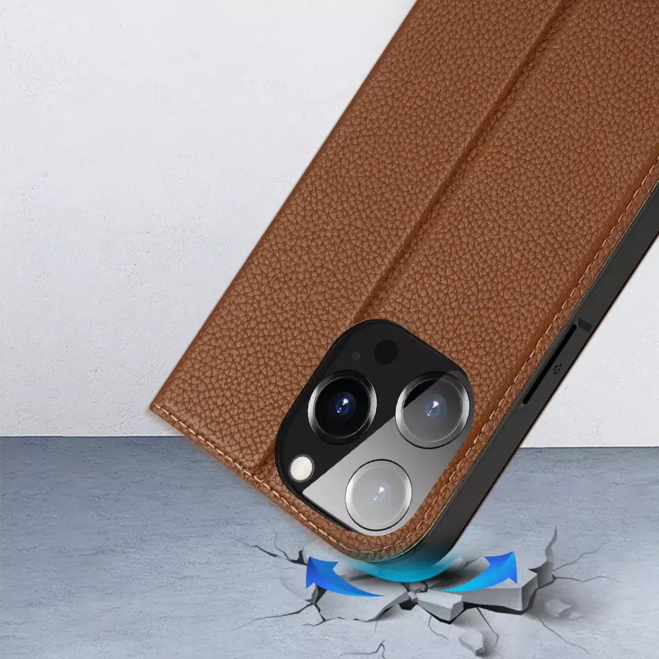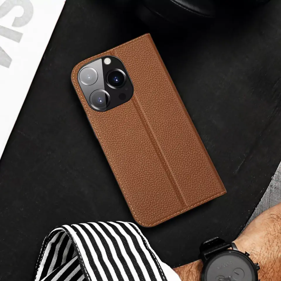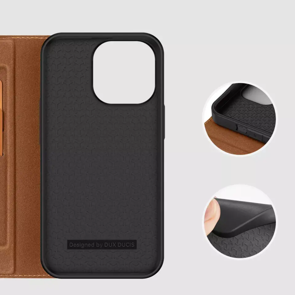 Dux Ducis Skin X2 etui do iPhone 14 Pro pokrowiec z magnetyczną klapką brązowy