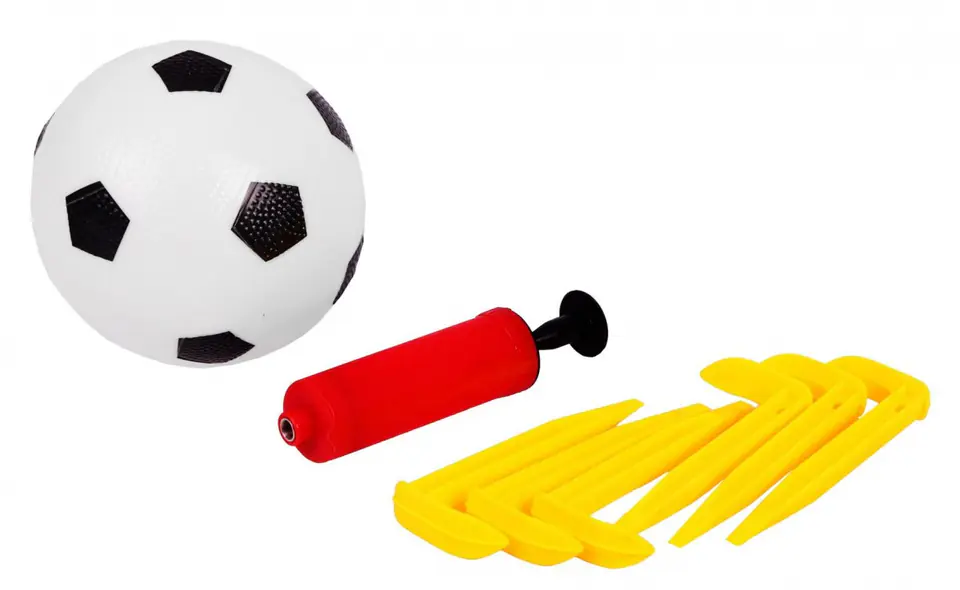 | - biała bramka do piłki nożnej z siatką, - piłka, - pompka, - 6 śledzi. | |