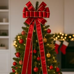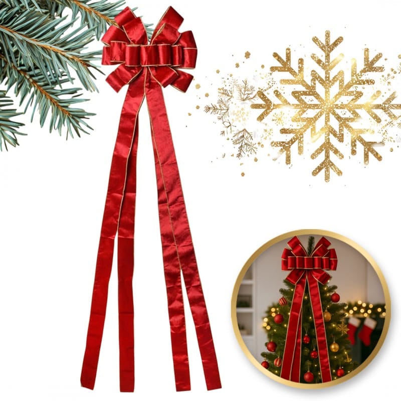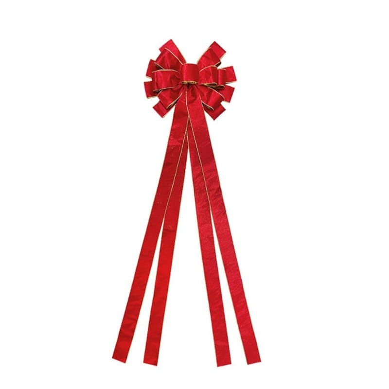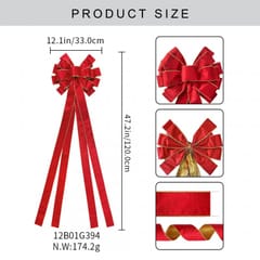 Duża czerwona kokarda XL ozdoba świąteczna na drzwi, choinkę welur 33 x 120cm WOZ44