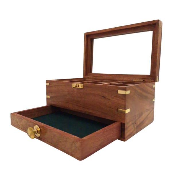 Duża Drewniana Szkatułka na Biżuterię – Organizer z Lusterkiem - DNU-022