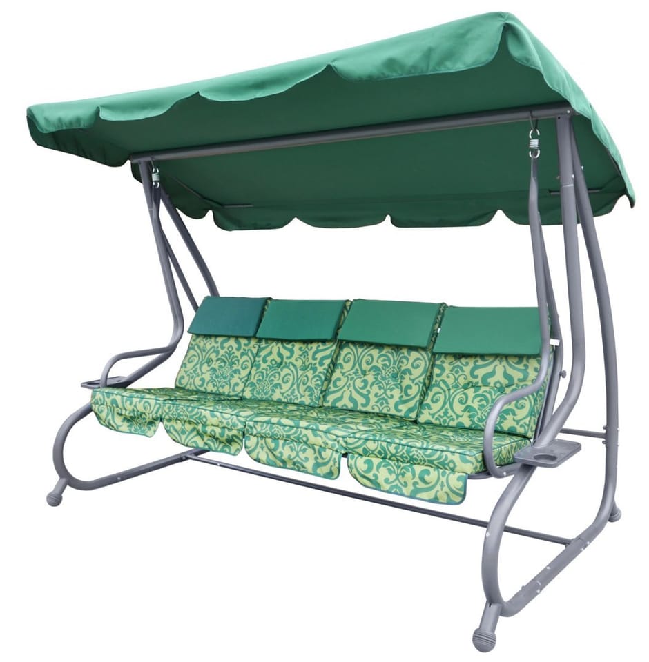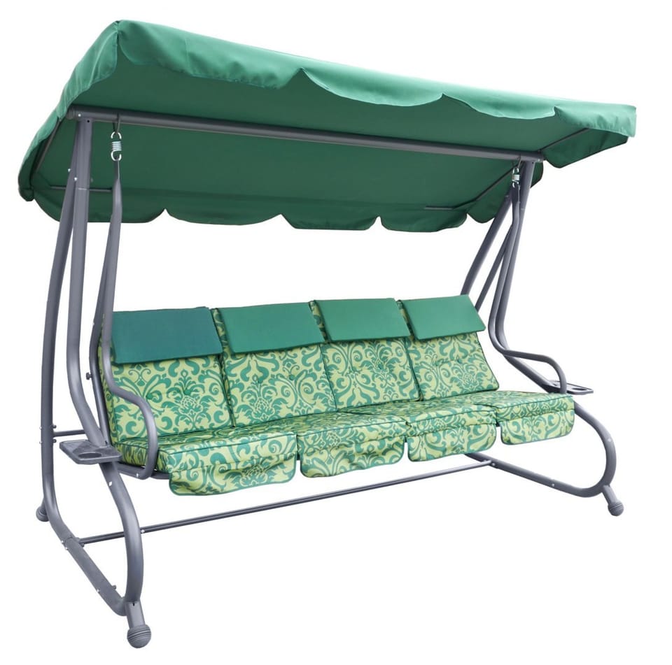 Duża Huśtawka ogrodowa 4-osobowa Zielony + Tekstylina + Daszek + Regulowane siedzisko + 4 Poduszki