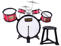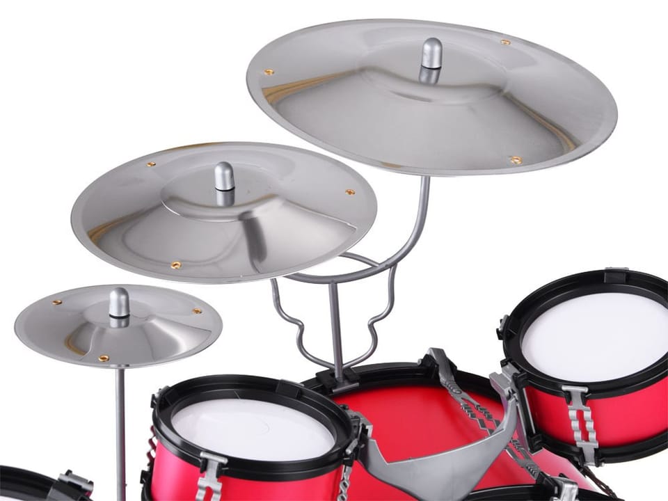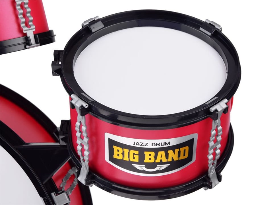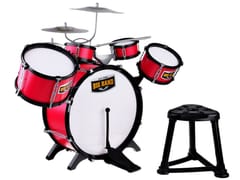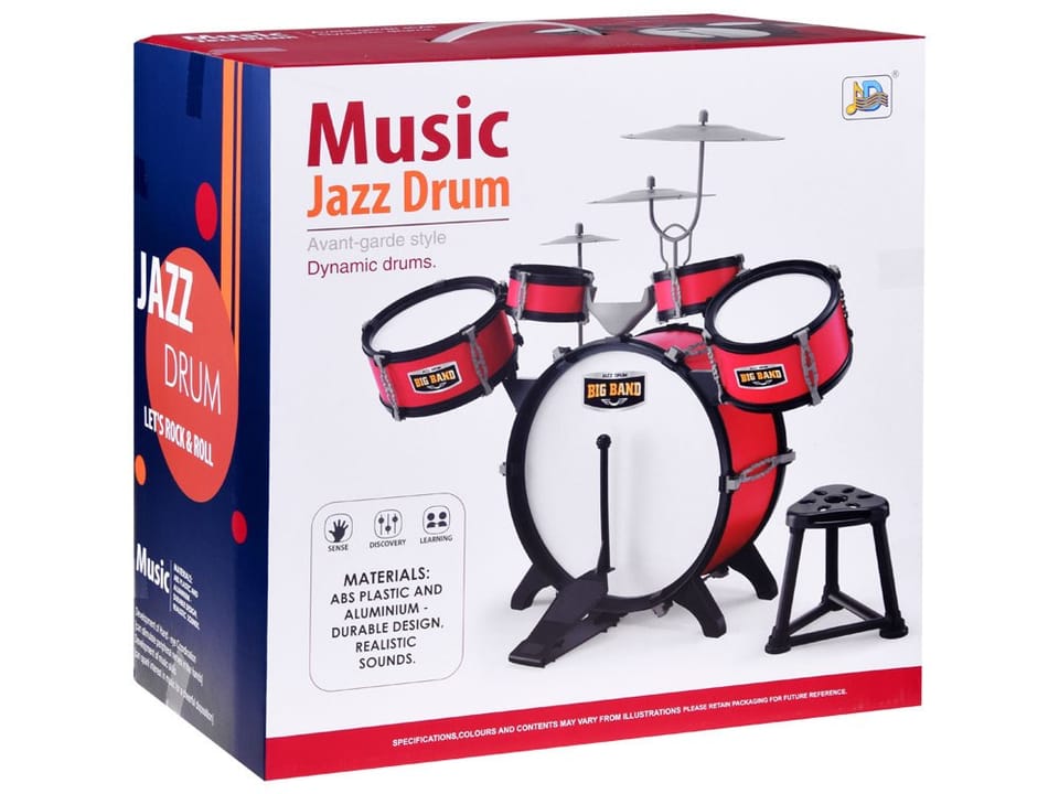 Duża pięciobębnowa perkusja to świetna propozycja dla małego rockmena. Zestaw perkusji zawiera pięć bębnów, trzy talerze, dwie pałeczki oraz krzesełko dla małego muzyka. Fajny pomysł dla muzyka, który uwielbia grać na czym popadnie. Realistyczna perkusja na pewno zaspokoi wymagania młodego muzyka, a kolorystyka przypadnie do jego gustu. Całość została wykonana z plastiku z dbałością o każdy detal przez co wygląda bardzo realistycznie. Talerze są wykonane z aluminium dzięki czemu możemy uzyskać bardziej realistyczny dźwięk. Perkusja pomoże dziecku rozwinąć zdolności muzyczne, wyczucie rytmu oraz pozytywnie spożytkować energię.Zestaw składa się:- 1 duży bęben z pedałem do uderzania- 1 duży bębenek- 1 średni bębenek- 2 małe bębenki- 3 talerze- 1 krzesełko- 2 pałeczki