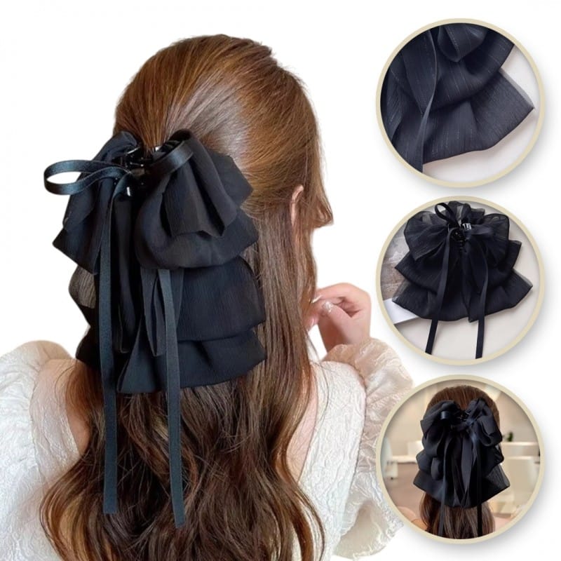 Duża warstwowa kokarda tiulowa, spinka do włosów, klamra czarna XL SP335