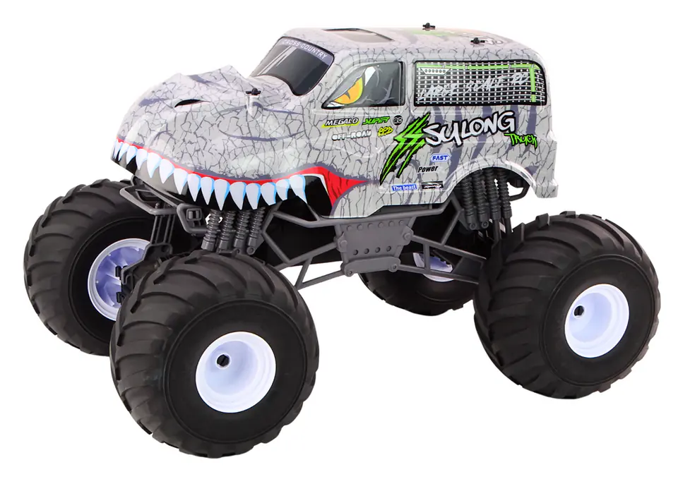 Imponujące ogromne auto terenowe z motywem dinozaura to marzenie każdego miłośnika zdalnie sterowanych pojazdów i prehistorycznych stworzeń! Zbudowane w skali 1:6, prezentuje się majestatycznie zarówno dla użytkownika, jak i obserwatorów.