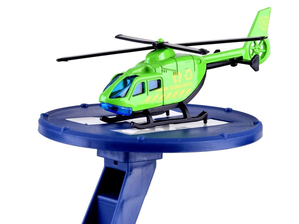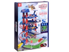 Duży parking z torami dla samochodów, lądowiskiem dla helikoptera i elektryczną windą pozwoli każdemu dziecku na wyśmienitą zabawę. Wielopoziomowy garaż posiada wyznaczone miejsca parkingowe, stację benzynową, podnośnik dla samochodów, lądowisko dla helikoptera. Na samej górze parkingu znajduje się stacja obsługująca windę.Zabawa z prawdziwie działającą windą zapewni mnóstwo pomysłów do wspólnego bawienia się. Wystarczy ułożyć parking z trasami na macie z miastem i bawić się w kierowcę.Panel z kolorowymi guzikami odpowiada za:- czerwony guzik spuszcza windę w dół- żółty przycisk wyciąga windę do góry- niebieski przycisk - wydaje odgłos policji, karetki, straż pożarna, strzelanie, odpalanie samochodu, startowanie samolotu- zielony przycisk - praca windy, klakson- na panelu migają także niebieskie światłaZestaw zawiera:- elementy do budowy parkingu- dwa samochody- helikopter- znaki drogowe- naklejki- mata z zielonym miasteczkiemWymiar:- parking 66 x 49 x 33 cm- mata miasta 57,5 x 77,5 cm- autko 7 x 3 x 2,5 cmPojazdy posiadają metalowe karoserie.Rewelacyjny wielopoziomowy parking ze stacją benzynową, podnośnikiem, windą, warsztatem samochodowym, lądowiskiem dla helikoptera. Parking przystosowany jest do "resoraków". Za pomocą windy autko może przemieszczać się na poszczególne piętra parkingu. Jeśli braknie benzyny bez problemu zatankujesz na stacji benzynowej. Gdy chcesz naprawić swój samochód skorzystaj z podnośnika, dzięki któremu naprawisz zawieszenie czy zmienisz oponę. Zestaw zawiera wiele dodatkowych elementów wspaniale urozmaicających zabawę, takich jak znaki drogowe, pachołki. Sklep Jokomisiada oferuje szeroki wybór zabawek z serii tory, autka, parking, garaż.Zestaw zapakowany w kolorowe, kartonowe opakowanie świetnie sprawdzi się jako prezent.