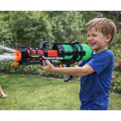 Zabawka została wyposażona w pojemny zbiornik na wodę o pojemności 1,25 litra, co pozwala na dłuższą zabawę bez konieczności częstego dolewania wody. Obsługa pistoletu jest bardzo prosta i intuicyjna. Wystarczy odkręcić zbiornik, napełnić go wodą, przykręcić z powrotem, a następnie napompować za pomocą dolnego suwaka, aby broń była gotowa do użycia.
