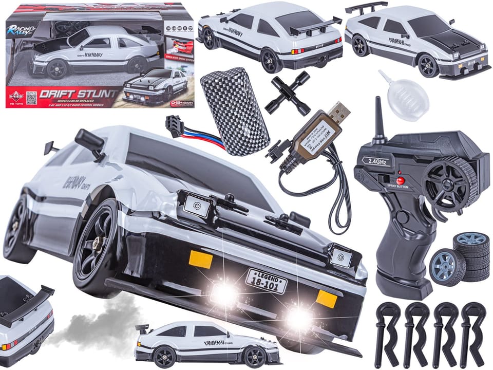 DUŻY Samochód Do Driftu Auto RC Drift 1:16 2,4 GHz PARA DYM Biała Toyota 4WD LED