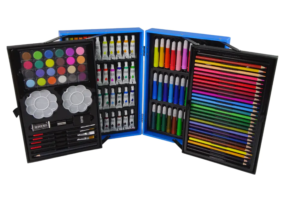⭐ KLUCZOWE CECHY PRODUKTU✅ Wszystko w jednym zestawieZawiera 145 elementów, w tym kredki, pisaki, farby i pastele olejne – idealne do rysowania, malowania i szkicowania.✅ Poręczna walizkaWalizka z wygodnym uchwytem, zamykana na zatrzaski, zapewnia łatwy transport i porządek wśród akcesoriów.✅ Bezpieczne materiałyBrak ostrych elementów, co sprawia, że zestaw jest bezpieczny dla dzieci już od 3. roku życia.✅ Rozwój kreatywnościPomaga rozwijać wyobraźnię, zdolności manualne oraz artystyczną duszę dziecka.