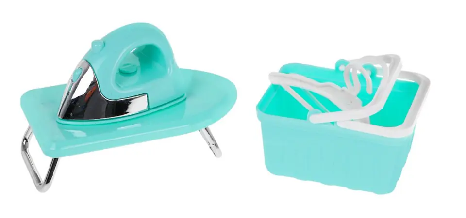 - pralka, - deska do prasowania, - żelazko, - koszyczek na pranie, - 2 wieszaki na ubrania.