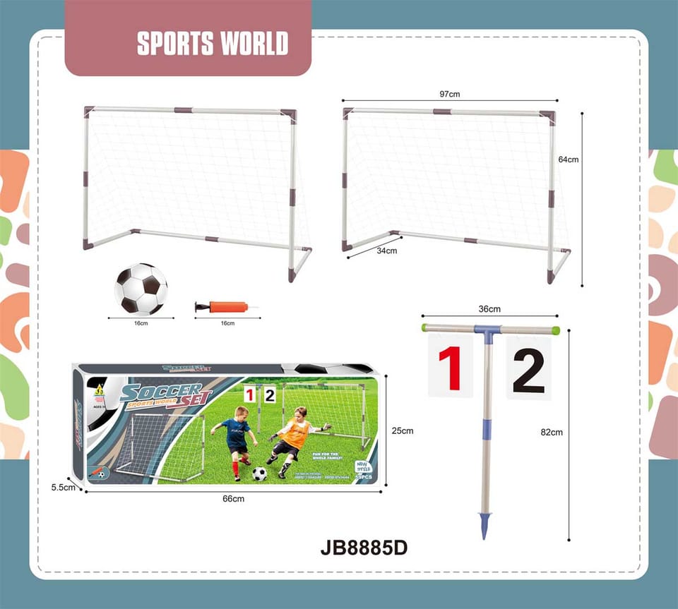 | - 2 x bramka z siatką,- tablica punktowa,- piłka,- pompka. |