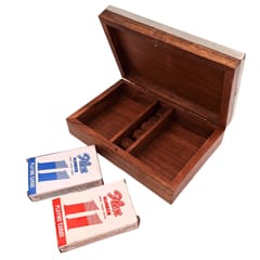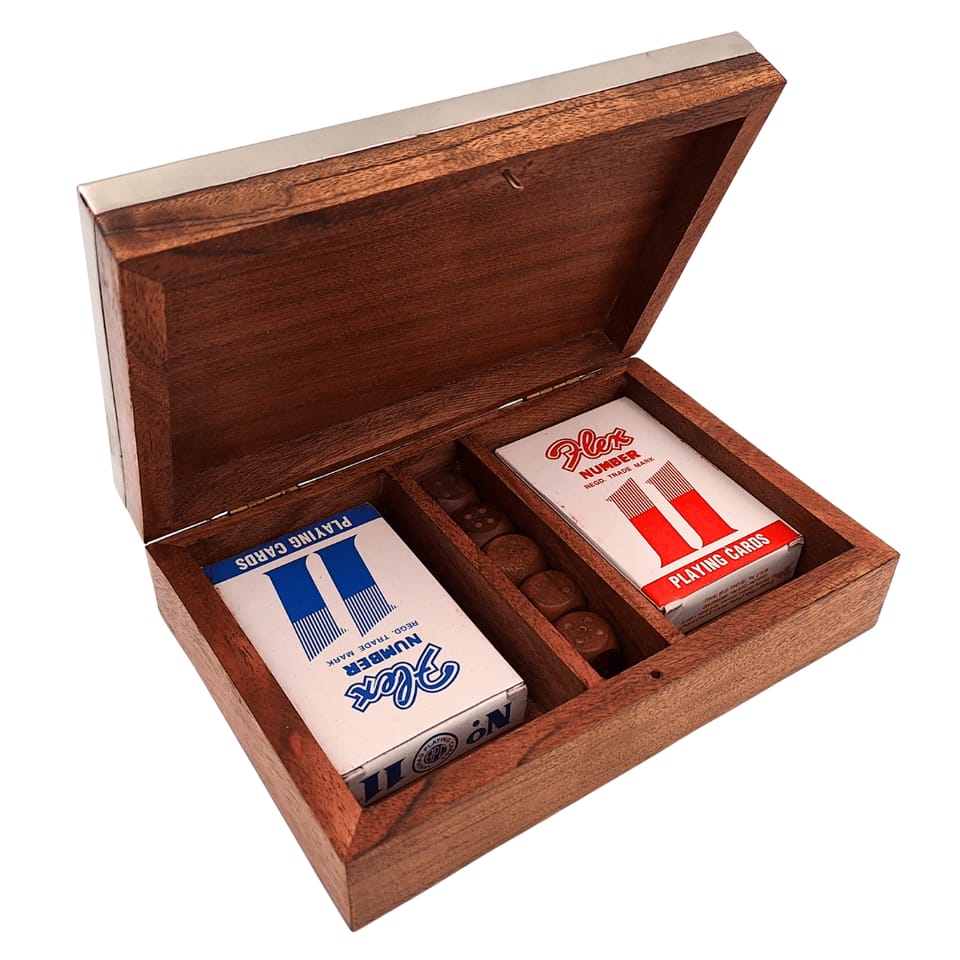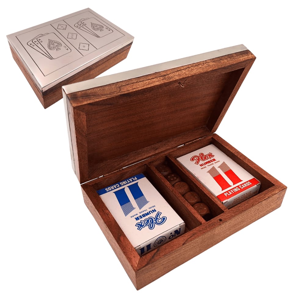 Dwie Talie Kart i Kości do Gry w Pudełku Drewnianym z Aluminiowym Topem - DC-004
