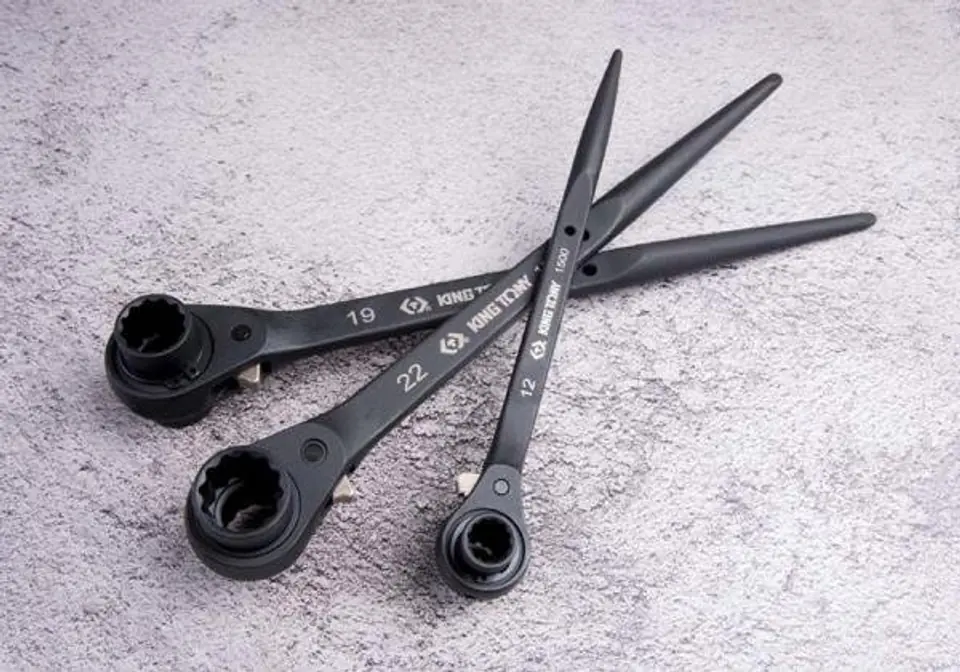 Do prac budowlanych na rusztowaniach.Podwójne rozmiary główki grzechotki.Przełącznik odwracalny do dokręcania i luzowania śruby.32 zęby.