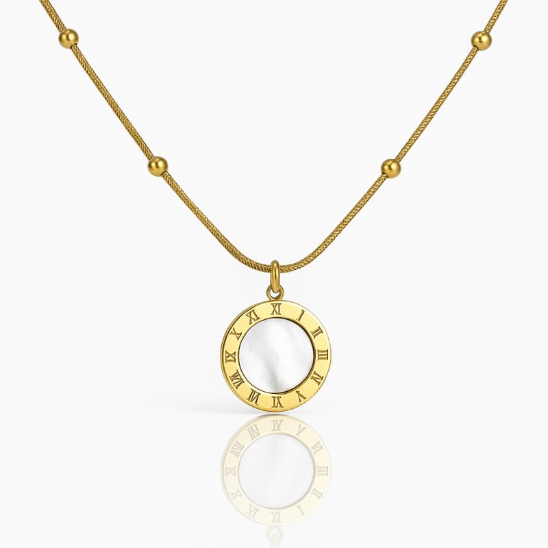 Dwustronny naszyjnik stal szlachetna pozłacana 14k złotem, czarna lub perłowa tarcza zegara NST2226