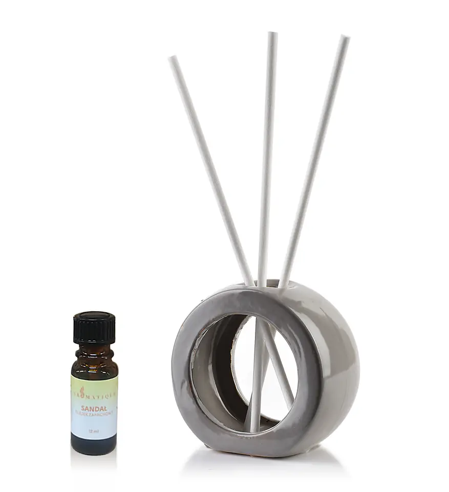 Dyfuzor ceramiczny z 3 patyczkami w zestawie. Idealna baza pod olejek.Do zestawu należy dokupić buteleczkę ulubionego olejku i wstawić do ceramicznej oprawy. Posiadamy przepiękne zapachy z serii AROMATIQUE o symbolu NA. Dyfuzor ceramiczny z patyczkami to nie tylko stylowa dekoracja, ale także praktyczne urządzenie, które pozwala cieszyć się ulubionymi zapachami w całym pomieszczeniu. W zestawie znajdują się 3 patyczki, które wchłaniają olejek zapachowy i delikatnie wydzielają go do powietrza, tworząc przyjemną atmosferę. Dyfuzor ceramiczny jako element wystroju wnętrza, dzięki swojemu designerskiemu wyglądowi dyfuzor ceramiczny stanowi również interesującą ozdobę w pomieszczeniu. Można postawić go na półce, stoliku lub komodzie, aby dodać charakteru i subtelności każdemu wnętrzu.Jak używać dyfuzora ceramicznego aby cieszyć się ulubionymi zapachami? Wystarczy wstawić z ceramiczną oprawę buteleczkę olejku (w zestawie nie jest on dołączony) i wetknąć patyczki. Im więcej patyczków zostanie umieszczonych w dyfuzorze, tym intensywniejszy będzie zapach. Wystarczy od czasu do czasu obrócić patyczki, aby zapewnić równomierne uwalnianie zapachu.wymiar oprawy: 8x4xh7,5cmdługość patyczka: 18,5cmzapakowany jednostkowo w eco box:4,5x8,5xh19cmwaga:112g/134g z opakowaniem