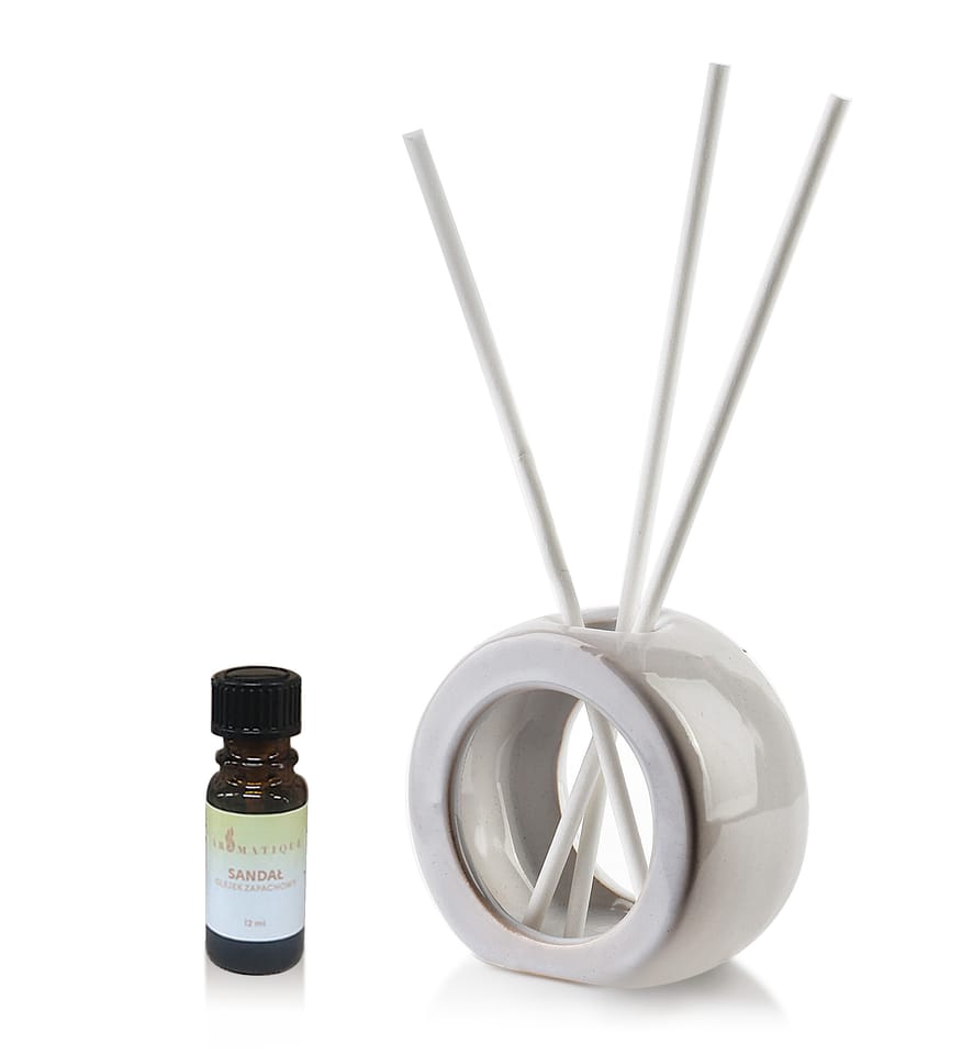 Dyfuzor ceramiczny z 3 patyczkami w zestawie. Idealna baza pod olejek. Do zestawu należy dokupić buteleczkę ulubionego olejku i wstawić do ceramicznej oprawy. Poleacamy olejek z serii AROMATIQUE o symbolu NA. Dyfuzor ceramiczny z patyczkami to nie tylko stylowa dekoracja, ale takżepraktyczne urządzenie, które pozwala cieszyć się ulubionymi zapachami w całym pomieszczeniu. W zestawie znajdują się 3 patyczki, które wchłaniają olejek zapachowy i delikatnie wydzielają go do powietrza, tworząc przyjemną atmosferę. Dyfuzor ceramiczny jako element wystroju wnętrza, dzięki swojemu designerskiemu wyglądowi dyfuzor ceramiczny stanowi również interesującą ozdobę w pomieszczeniu. Można postawić go na półce, stoliku lub komodzie, aby dodać charakteru i subtelności każdemu wnętrzu. Jak używać dyfuzora ceramicznego aby cieszyć się ulubionymi zapachami? Wystarczy wstawić z ceramiczną oprawę buteleczkęolejku (w zestawie nie jest on dołączony) i wetknąć patyczki. Im więcej patyczków zostanie umieszczonych w dyfuzorze, tym intensywniejszy będzie zapach. Wystarczy od czasu do czasu obrócić patyczki, aby zapewnić równomierne uwalnianie zapachu. wymiar oprawy: 8x4xh7,5cm długość patyczka: 18,5cm (kolor biały) zapakowany jednostkowo w eco box:4,5x8,5xh19cm waga:112g/134g z opakowaniem