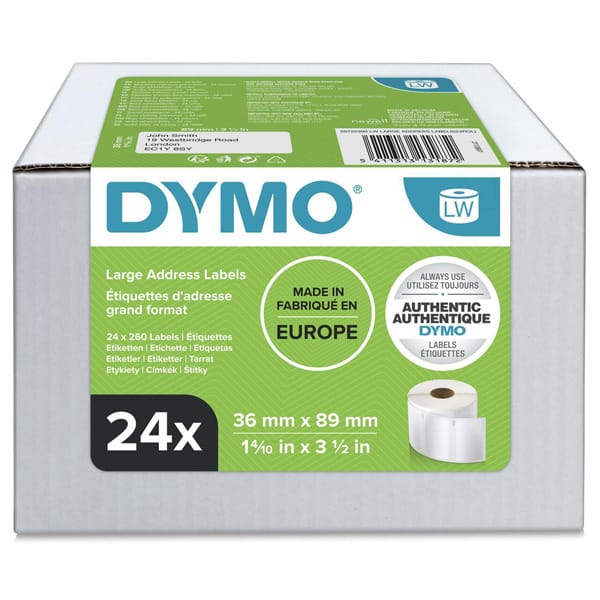 Dymo etykiety papierowe 89mm x 36mm, białe, duże, 24 x 260 szt., S0722390, op. 24 rolki, cena za 1 szt