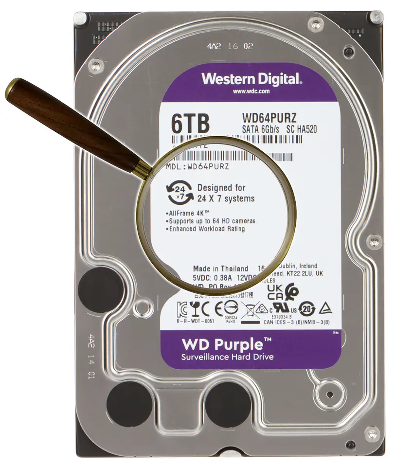Dyski twarde WD Purple klasy surveillance oferują unikatową technologię AllFrame 4K, która w połączeniu z mechanizmem transmisji strumieniowej ATA pomaga ograniczyć zjawisko „wypadania” klatek wideo, podnosi jakość odtwarzanego obrazu i umożliwia obsługę większej liczby dysków w środowisku NVRDyski te są dedykowane do rejestracji wideo HD w trybie ciągłym 24/7 oraz posiadają zmniejszone zużycie energiiPodłączany jest za pomocą złącza Serial ATA