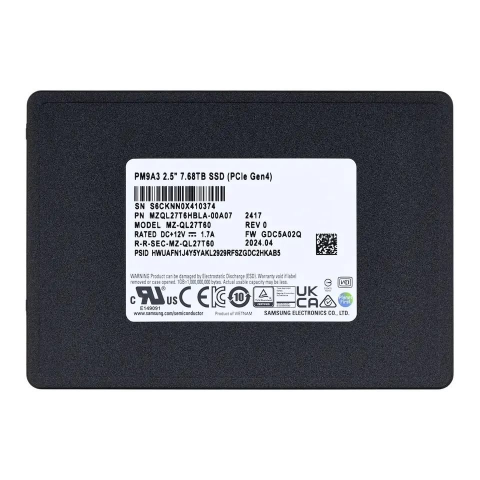 Dysk SSD Samsung PM9A3 7.68TB U.2 NVMe Gen4 MZQL27T6HBLA-00A07 DWPD 1