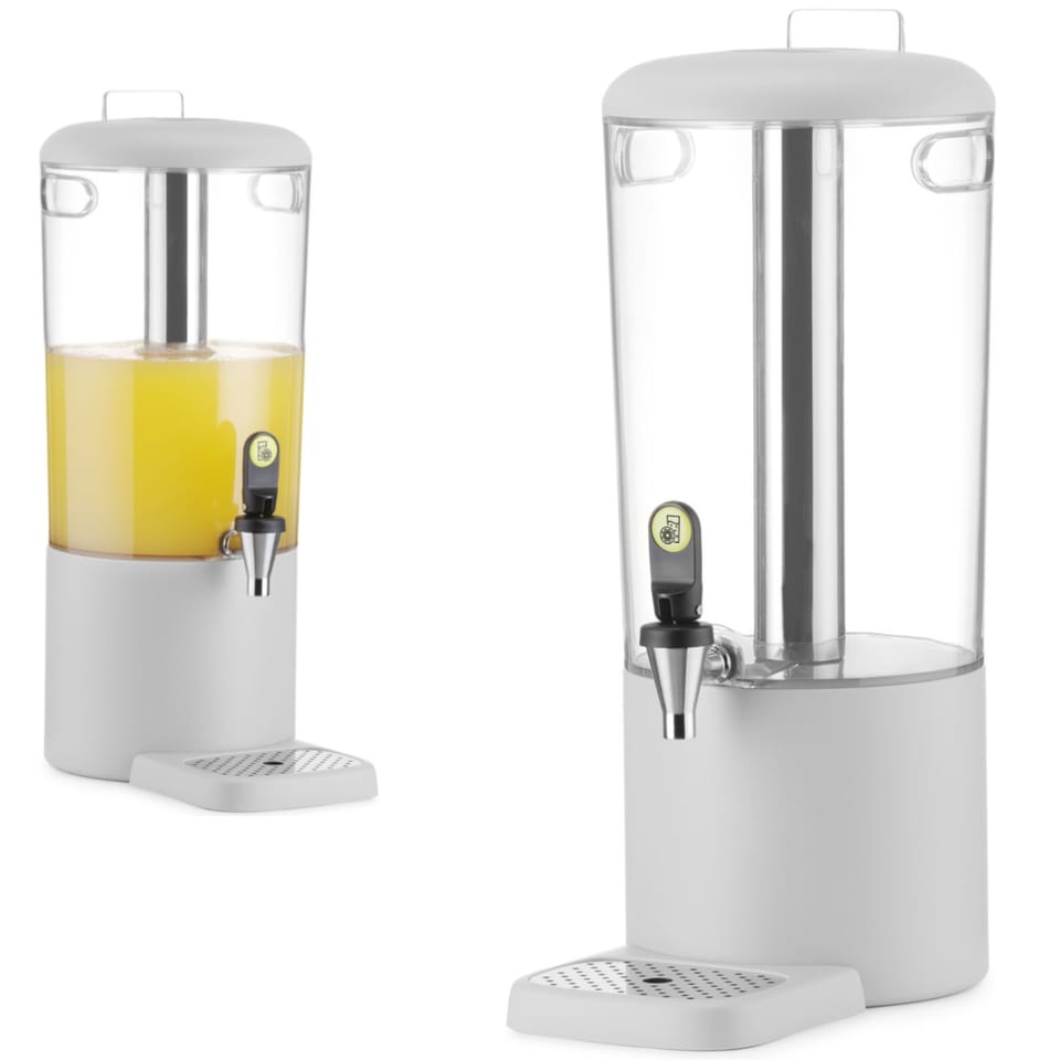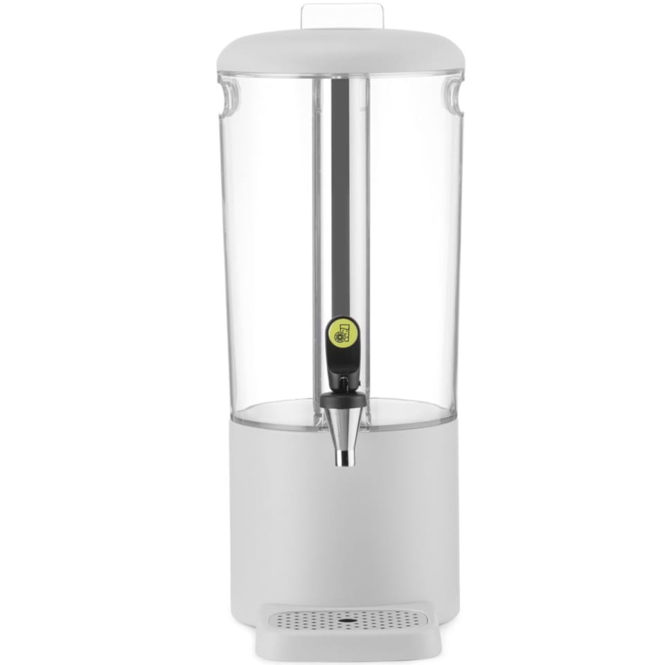 Kod produktu: 1031041Dyspenser do napojów HENDI łączy praktyczną funkcjonalność z estetycznym, profesjonalnym wyglądem. Wyjmowana stalowa rura chłodząca na lód wykonana ze stali nierdzewnej pozwala na utrzymanie napoju w niskiej temperaturze. Dyspenser wyposażony jest w kran zapobiegający kapaniu, umieszczony na 130 mm od podstawy oraz wyjmowaną tacę ociekową z obudową w dopasowanym kolorze. Szybki montaż i demontaż zapewnia łatwe utrzymanie higieny. Przezroczysty korpus ułatwia kontrolowanie poziomu płynu.Cechy produktu:
