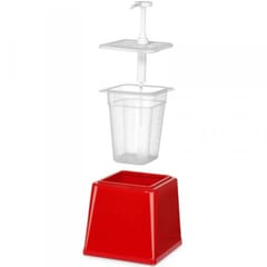 Dyspenser marki Hendi jest praktycznym akcesorium przeznaczonym do użytku w barach szybkiej obsługi, bufetach, restauracjach czy w cateringu. Sprawdzi się do różnego rodzaju sosów. Obudowa wykonana została z ABS. Wewnętrzny pojemnik z miarką, pokrywą i wyjmowaną pompką wykonany został z polipropylenu. Materiał pojemników jest całkowicie pozbawiony BPA, nie wpływa na smak i zapach zawartości. Blokada pompki zapobiega przypadkowemu naciśnięciu podczas transportu. Pojemność dozownika wynosi 2,5 l, wielkość jednego dozowania to 20 ml. Pojemnik jest odporny termicznie od -40°C do 70°C. Pojemnik jest łatwy w demontażu, można go myć z zmywarce.