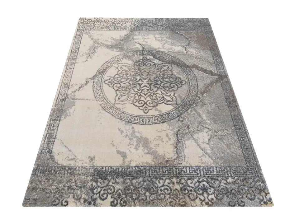 Wysokiej jakości dywan Vista sprawdzi się w eleganckich pomieszczeniach. Motyw Versace z pewnością spodoba się wszystkim mieszkańcom, jak i gościom. Ten przyjemny w dotyku dywan pełni funkcję izolacyjną od chłodu podłogi. Dywan nowoczesny Vista fantastycznie prezentuje się w każdym otoczeniu, często stosuje się je do salonów czy sypialni. Bardzo przyjemny w dotyku. Dywan w kolorze szarym (z dodatkiem kremowego) z efektownym wzorem Versace, który nada charakteru każdemu pomieszczeniu. Waga - 2500g.