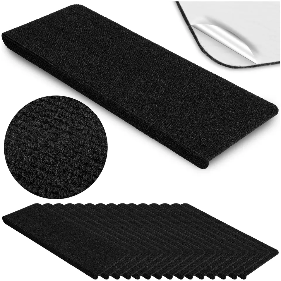 Dywaniki na stopnie ADRIA czarne 15 sztuk⭐⭐⭐⭐⭐☑️ Kolor: czarny➡️ Łatwy montaż: przymierzyć, odkleić warstwę ochronną, nałożyć dywanik na wybraną powierzchnię, warstwą antypoślizgową do stopnia.✅W zestawie: 15 sztuk ✅ Zakup od producenta ✨Dywaniki na stopnie Adria: estetyczne i funkcjonalne✨Jeśli poszukujesz metody, by zabezpieczyć swoje schody przed śladami użytkowania, jednocześnie dodając wnętrzu szczyptę elegancji, maty na stopnie Adria są idealnym wyborem. Zapewniając funkcjonalność oraz unikatowy styl, te dywaniki wyróżniają się długotrwałością, najwyższą jakością wykonania i łatwością instalacji. Adria staje się kluczowym dodatkiem do każdego domu, odmieniając wygląd schodów na bardziej przyciągający wzrok oraz podnosząc ich bezpieczeństwo. ✴️ Specyfikacja produktu:✅ Wysoka jakość materiału: Dywaniki wykonane są z wykładziny igłowanej, zapewniając trwałość i odporność na codzienne użytkowanie. Materiał ten jest łatwy w utrzymaniu, co gwarantuje długoletnie zachowanie estetycznego wyglądu produktu.✅ Bezpieczeństwo użytkowania: Z myślą o bezpieczeństwie, dywanik wyposażony jest w warstwę antypoślizgową na całej powierzchni, zapewniając stabilność i zabezpieczając przed poślizgnięciem.✅ Prosty montaż: Montaż dywaników nie wymaga angażowania specjalistów. Wystarczy zdjąć folię ochronną i nałożyć dywanik warstwą antypoślizgową na oczyszczoną i odtłuszczoną powierzchnię stopnia, aby cieszyć się bezpiecznymi i estetycznymi schodami.✅ Estetyka i funkcjonalność: Dywaniki Adria to nie tylko ochrona schodów, ale również element dekoracyjny. Jego wyjątkowy design dodaje uroku każdemu wnętrzu, sprawiając, że staje się ono bardziej przytulne i eleganckie.✅ Specyfikacja techniczna: Dywanik ma wymiary 63,5 x 23 x 3 cm (z zagięciem) i wagę 125 g, co ułatwia jego montaż i dostosowanie do większości standardowych stopni. Grubość dywanika wynosi 4 mm, co zapewnia komfort użytkowania bez ryzyka potknięcia. ✏️ Specyfikacja:✅ Materiał: wykładzina igłowana✅ Grubość: 4 mm✅ Skład: 100% Polipropylen (PP)✅ Warstwa antypoślizgowa: na całej powierzchni✅ Wymiary: 63,5 x 23 x 3 cm (zagięcie)✅ Waga: 125 g✅W zestawie 15 sztukInformacja dotycząca montażu:Przed montażem dywaników należy wyczyścić i odtłuścić powierzchnię na której będą używane. Powierzchnia ta musi być gładka, równa, odtłuszczona, sucha i czysta. ✔️ Zalety produktu:✅ Materiał najwyższej klasy✅ Wykonanie z dbałością o estetykę✅ Zapewnienie ochrony oraz bezpieczeństwa schodom✅ Prosty i ekspresowy sposób montażu✅ Antypoślizgowa powłoka pokrywająca całą powierzchnię✅ Atrakcyjny dodatek dekoracyjny✅ Komfort użytkowania ↩️ Warstwa antypoślizgowa na całej powierzchniDywaniki Adria mają wiele zalet dzięki swojej specjalnej warstwie antypoślizgowej na całej powierzchni. Dzięki niej dywaniki mają lo wiele epszą przyczepność do podłoża, umożliwiają łatwiejsze schodzenie i wchodzenie po schodach i przede wszystkim zwiększają bezpieczeństwo użytkowników. UWAGA | Przedstawione kolory należy traktować poglądowo - mogą odbiegać od rzeczywistych ze względu na różne ustawienia monitorów oraz proces obróbki zdjęć • Rzeczywiste wymiary mogą się różnić od podanych w opisie. Tolerancja błędów może wynosić +/- 2 cm