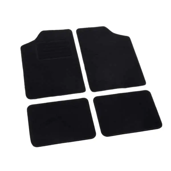 Dywanik samochodowe Zestaw 4 szt Zestaw 4 szt dywaników składający się z dwóch mat przednich i dwóch tylnych. Chronią wykładzinę podłogową samochodu przed brudem, takim jak błoto, śnieg lub woda. Ponadto oszczędzasz koszty konserwacji, ponieważ tapicerka samochodu zużywa się szybciej.Dane techniczne: Materiał: tekstylny, Wymiary przód: dł.68 x szer.44cm, Wymiary tył: dł.44 x szer.33cm, Kolor: czarny,
