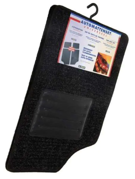 Zestaw 4 szt dywaników samochodowych czarno Uniwersalne Zestaw 4 szt dywaników składający się z dwóch mat przednich i dwóch tylnych. Chronią wykładzinę podłogową samochodu przed brudem, takim jak błoto, śnieg lub woda. Ponadto oszczędzasz koszty konserwacji, ponieważ tapicerka samochodu zużywa się szybciej.Dane techniczne: Materiał: tekstylny, Wymiary przód: dł.68 x szer.44cm, Wymiary tył: dł.44 x szer.33cm, Kolor: czarno