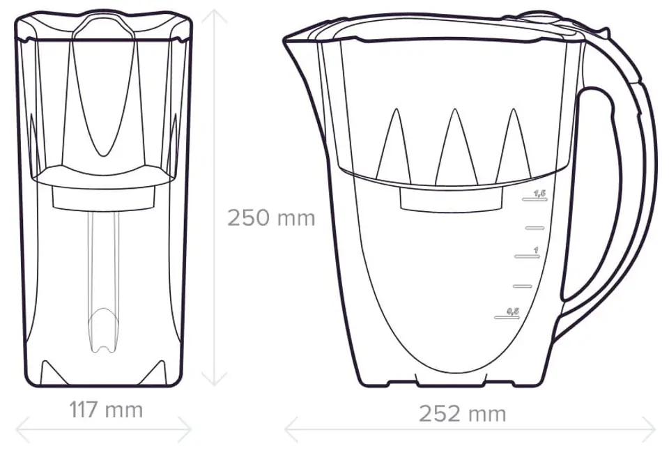 Zgrabny i elegancki dzbanek filtrujący, wyposażony w wygodną żebrowaną pokrywkę i mechaniczny wskaźnik zużycia wkładu