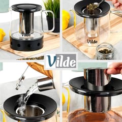 Klasyczny dzbanek z zaparzaczem do herbaty w zestawie z podgrzewaczem. Umożliwia przygotowywanie pysznych naparów bez fusów i serwowanie ciepłych napojów. Sprawdzi się do parzenia herbaty, naparów owocowych lub ziół. Wygodny w użytkowaniu oraz łatwy w czyszczeniu. Doskonały pomysł na prezent dla miłośników parzonej herbaty. Oryginalny produkt marki Vilde. Wyprodukowano zgodnie z europejskimi standardami.