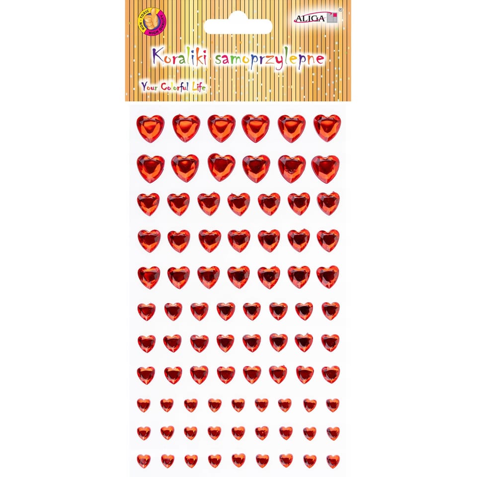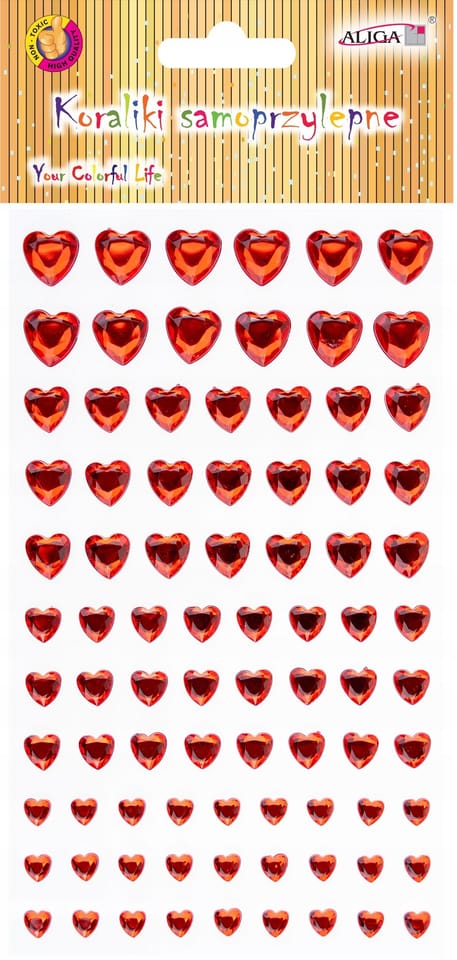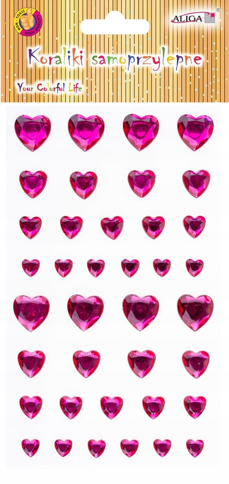 Dżety kryształki samoprzylepne mix rozmiarów serca 9,5x15,5cm JET-3231 ALIGA Dżety idealnie nadają się do wszelkich prac plastycznych.