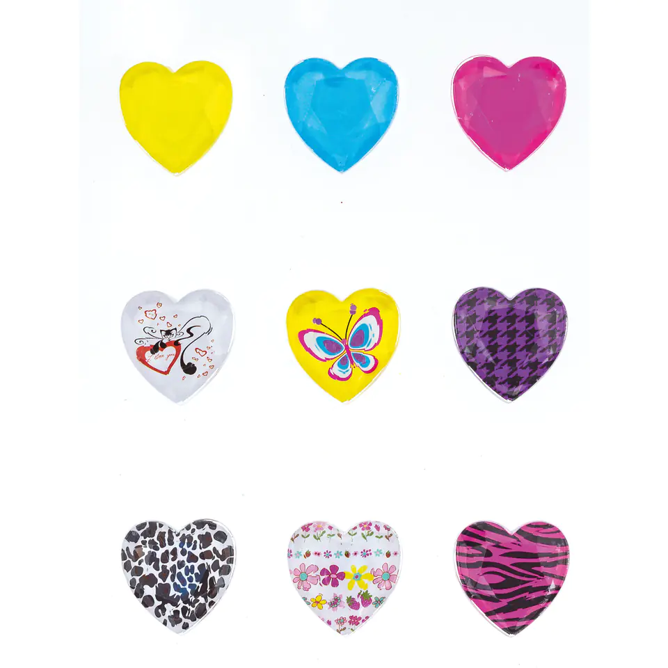 Dzety samoprzylepne serca mix wzorów, 9 sztuk wys. 2,3mm