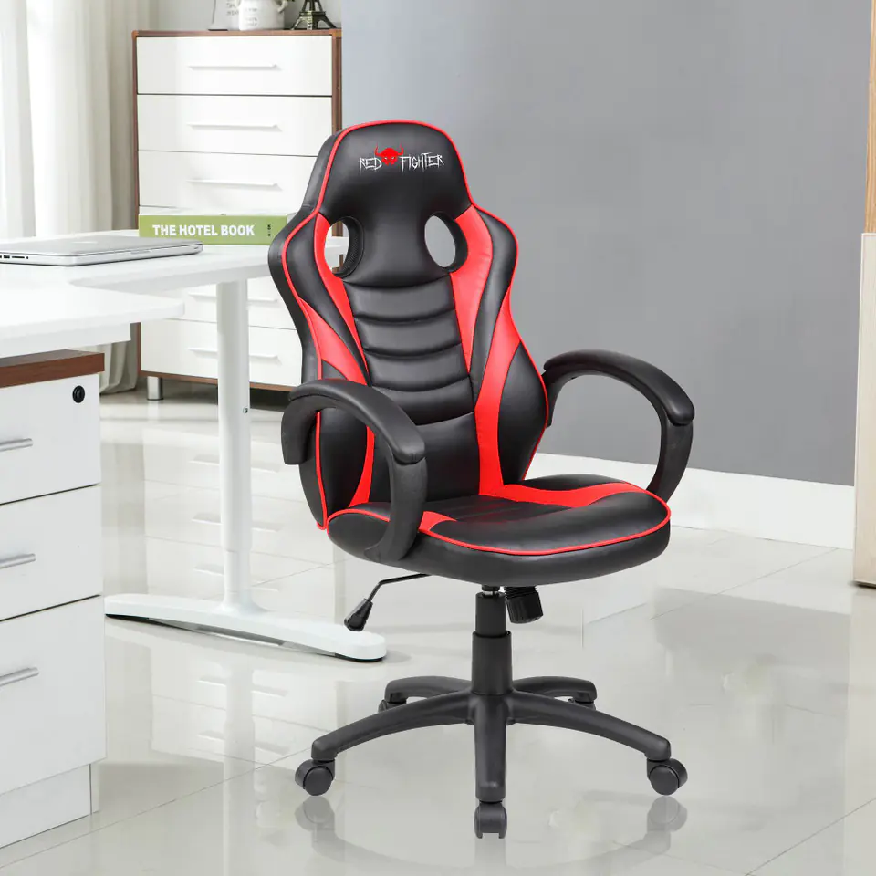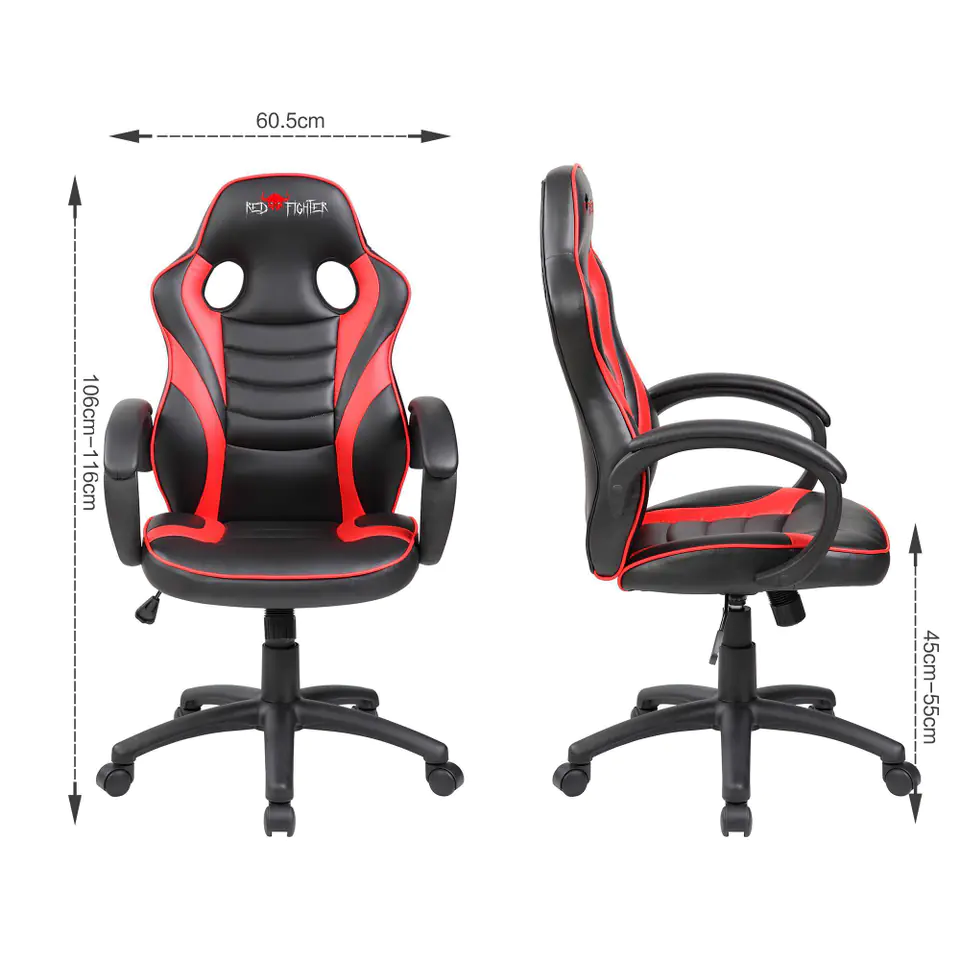 Dziecięcy gamingowy fotel Red Fighter C6, czarno-czerwona